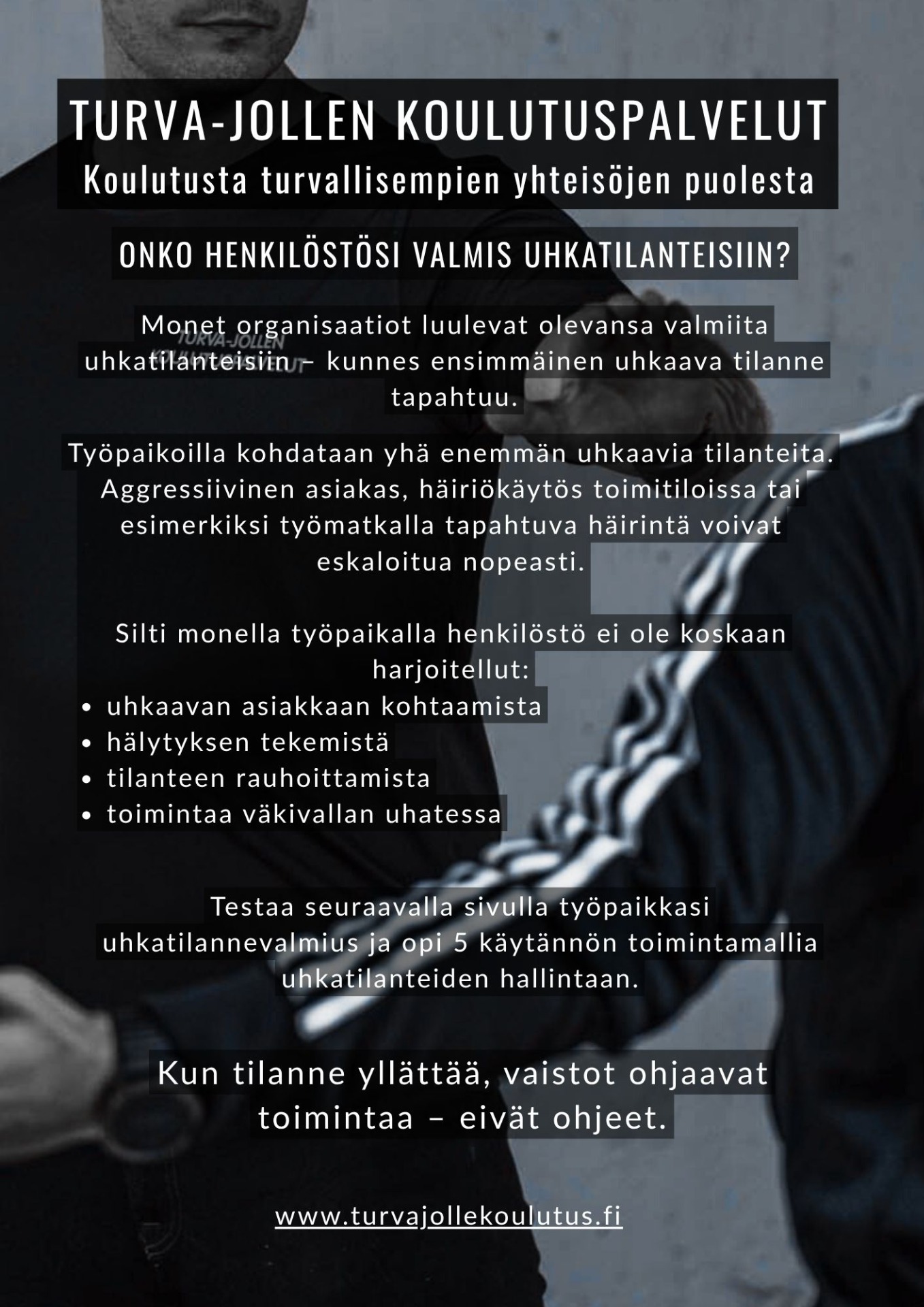Monet organisaatiot luulevat olevansa valmiita uhkatilanteisiin – kunnes ensimmäinen uhkaava tilanne tapahtuu. Lataa maksuton opas ja opi 5 käytännön toimintamallia, joilla yritykset parantavat henkilöstönsä valmiuksia häiriö- ja uhkatilanteissa.